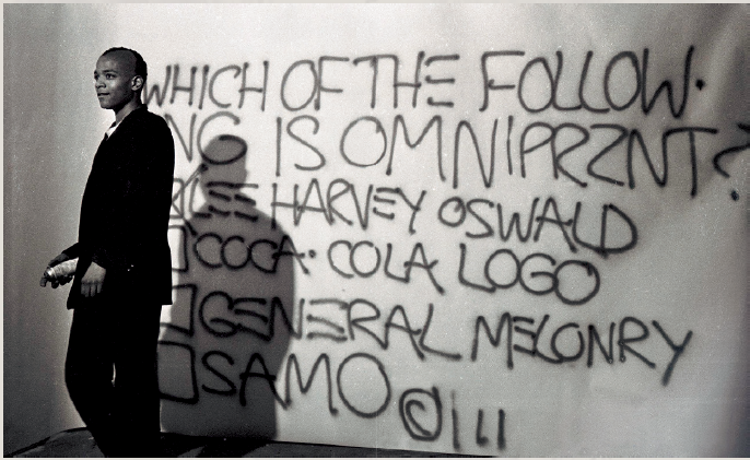La última escuela a la que asistió estaba enfocada a jóvenes talentosos emproblemados con la educación tradicional. The–City–as–School fue un lugar donde detonó su creatividad inagotable; ahí conoció personajes con bagaje e intereses similares a los suyos, como Al Diaz, con quien creó un personaje ficticio que dejaba mensajes en los muros de la ciudad: SAMO —apócope de Same Old Shit—. Comenta el artista Fab 5 Freddy: «En aquel entonces los graffitis no eran más que etiquetas, marcas y huellas para apropiarse del espacio, sólo escribíamos nuestros nombres, pero SAMO rompió con eso y nos llenó de ideas profundas, mensajes críticos y una posición ideológica que nos hacía mucho sentido»”.