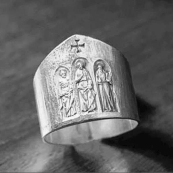 Anillo cardenalicio: símbolo por excelencia de fidelidad al Papa y a la Iglesia, tanto por su forma —el círculo alude a la eternidad— como por el oro que lo recubre; solía llevar un zafiro incrustado. Cada anillo tiene grabado el escudo del Papa que lo entrega en obsequio, ya sea durante el consistorio —costumbre impuesta por Benedicto XVI— o durante la misa al día siguiente del consistorio —como ha sido la usanza desde hace siglos—.