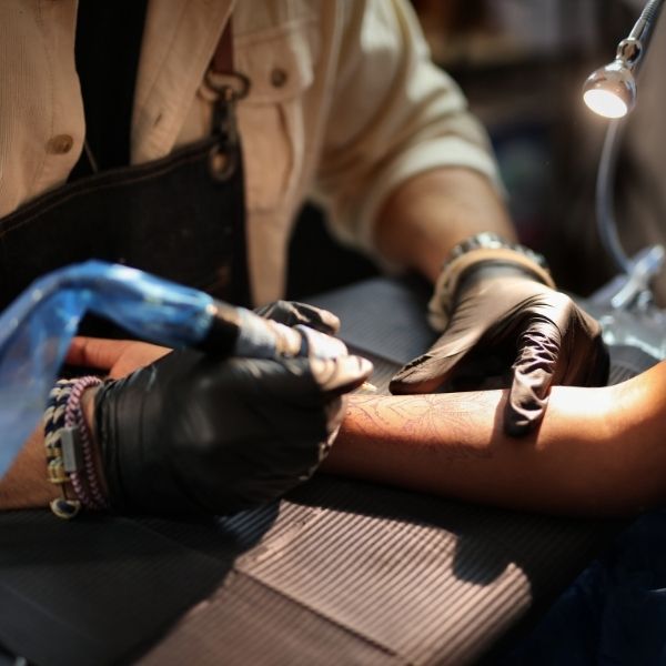 La máquina de tatuajes penetra 1 milímetro de la piel cuando mueve una aguja de arriba abajo entre 50 y 3 mil veces por minuto. La aguja inyecta gotas de tinta especial para tatuajes, que es en realidad una mezcla de pigmentos tanto vegetales como minerales, metálicos y plásticos. Este aparato funciona con un motor eléctrico que usualmente es accionado por un pedal.