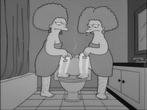 O más para acá, a las gemelas Selma y Patty Bouvier, las hermanas de Marge Simpson que llevan viviendo más de diez años juntas —gracias a Matt Groening— y han decidido pasar el resto de su vida así, con alguno que otro lapsus: mientras Patty dedica su tiempo al celibato, Selma lo dedica al libertinaje.