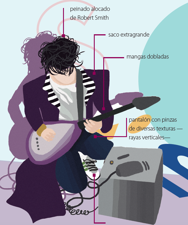 En el caso de los «chicos malos» —y no tan malos— las chamarras negras de cuero con tachuelas fueron un must, así como los lentes Ray-Ban, que marcaron tendencia en aquella época; mientras que el tipo de peinado dependía de las tribus urbanas, pero casi todos los de este «tipo» seguían el estilo de The Cure.