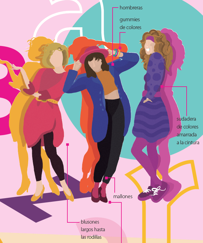 La ropa ochentera fue tan icónica que terminó por convertirse en uno de los elementos con los que mejor se identifica a estos años —no en vano algunos le llaman «los terribles 80»—, pues las prendas «coloridas» y extravagantes la hicieron única: todos nos vestíamos con varias capas de trapos de tallas extra grandes en todos los tonos y estampados, que coordinábamos con pelo alborotado y, si eras chava, una gran cantidad de maquillaje en la cara.