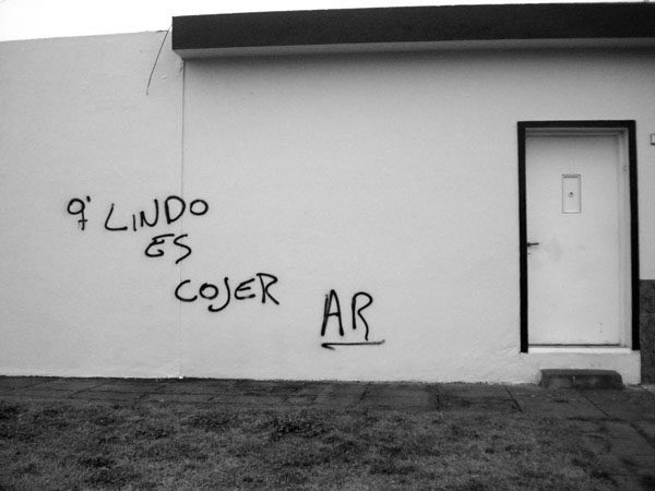 Hoy en día rayar las paredes es una transgresión, un acto que realizado en la clandestinidad se ha vuelto, para quienes son asiduos a realizarlo, un movimiento artístico que a la manera del muralismo toma los muros como su espacio: el graffiti –de la raíz grafo, ‘escrito’, ‘escribir’–; cuya índole los críticos siguen discutiendo. Pero más allá del arte o la intención artística-estética, las personas usan los muros para inscribir protestas, pensamientos, poemas, declaraciones amorosas, burlas, odios, para crearle mala fama a alguien, o para dejar su huella en los lugares que han pisado, sus nombres; como un espacio de opinión y expresión pública –o íntima, si es que está plasmada en la intimidad de un baño público–. De modo que a veces las paredes contienen todo eso que se quiere comunicar, los mensajes son como un grito o un alarido de las calles, la mayoría de las veces perecedero por su carácter ilícito y transgresor.