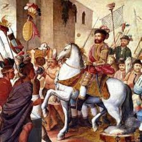 Pedro de Alvarado fue uno de los conquistadores más famosos de la Nueva España. Nació en Badajoz hacia 1485 y, en 1510, pasó con sus hermanos a las islas de América. Cuéntase que se presentó en ellas ostentando un sayo viejo que le dio un tío suyo, caballero del hábito de Santiago, en el que aún se veía claramente el lugar que había ocupado la cruz de dicha orden, por lo cual dieron en llagarle por burla «el comendador»; mas después, andando el tiempo, alcanzó con sus hechos la verdadera condecoración.